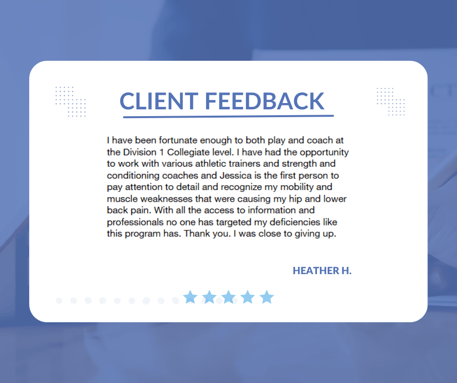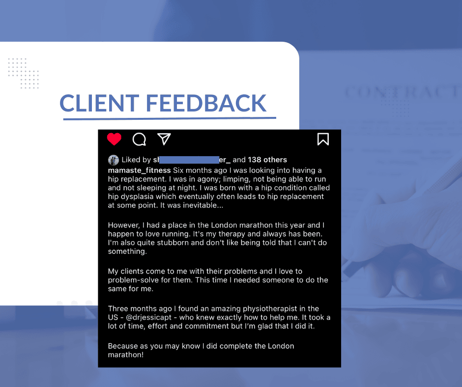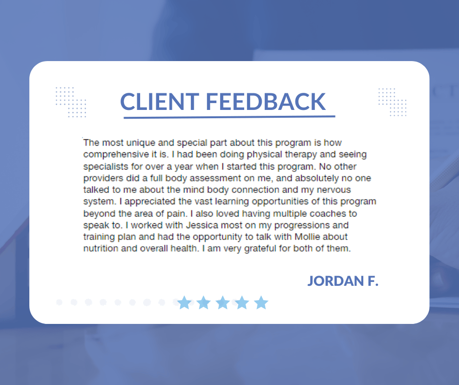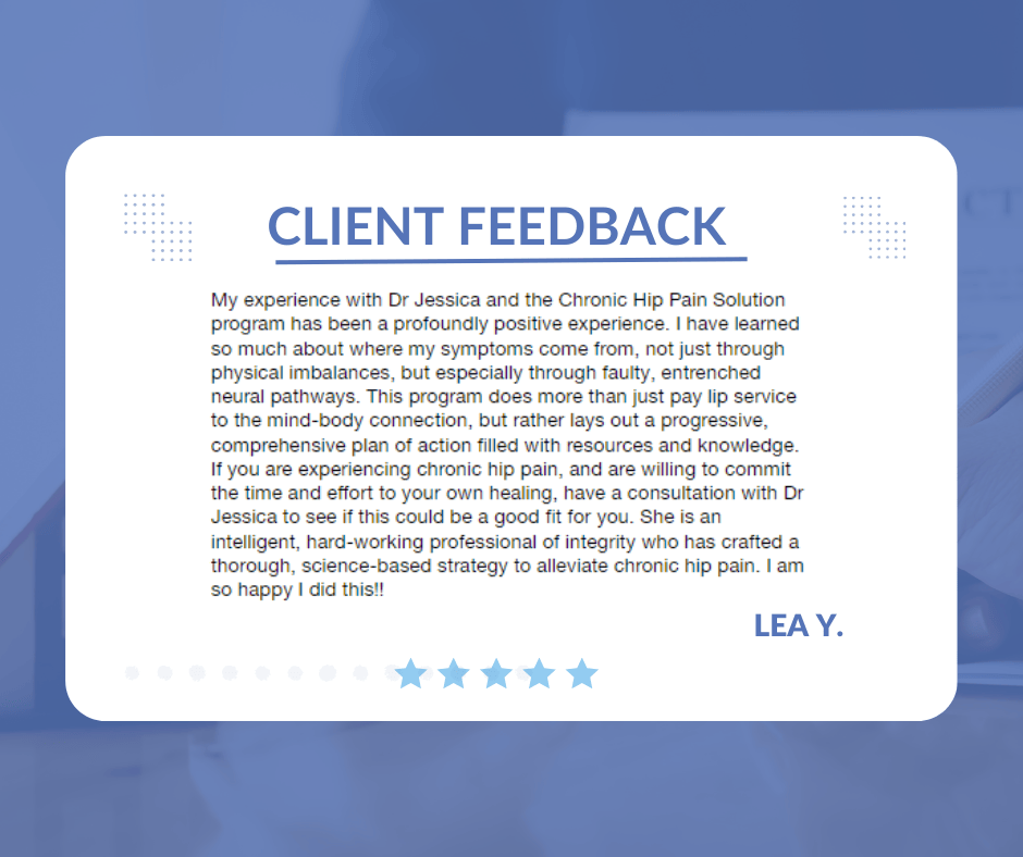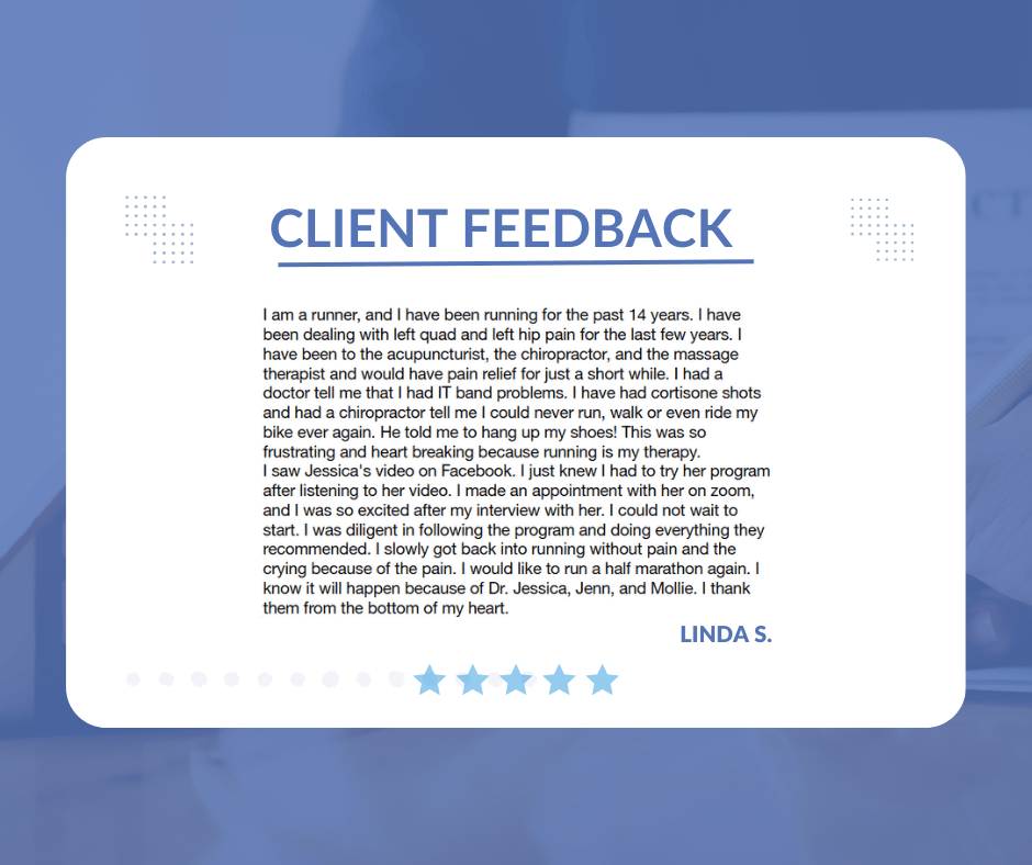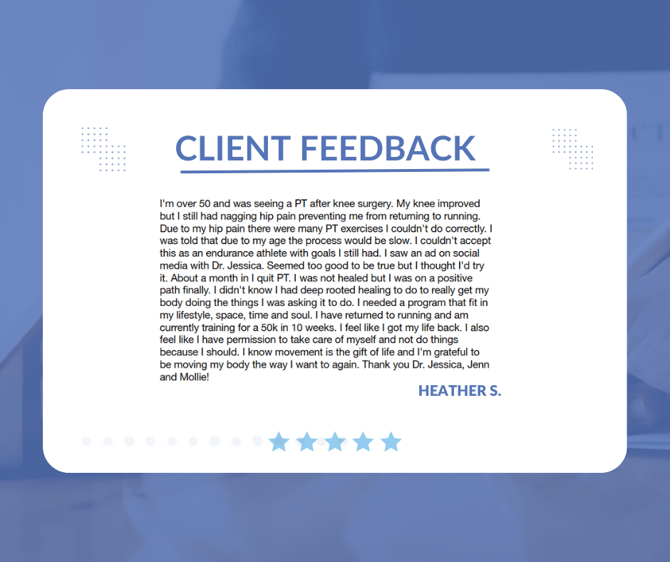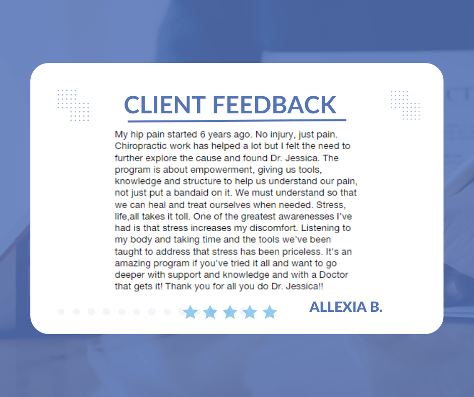 Jessica focuses on finding the root cause of dysfunction to heal the source of her patients’ concerns rather than simply treating symptoms. Because of her own journey with chronic hip pain,
